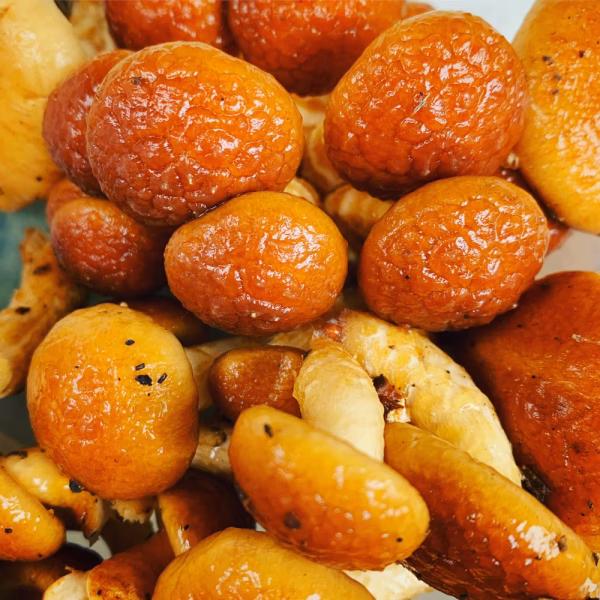 ブルースファームの「今日の収穫物」をセットに!軸までおいしい「軸太ブルしい613」と上品な香りとプリプリ感で人気の「おいしいブルしい309」のミックス。それに、原木なめこも!