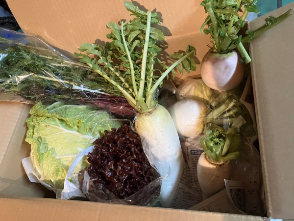 120サイズの箱に10キロ分の野菜を、入れてお届けします。野菜の内容は可能な限りでご要望にお応えしますが、天候(特に雪)により、収穫出来ない時もありますので、ご了承下さい。