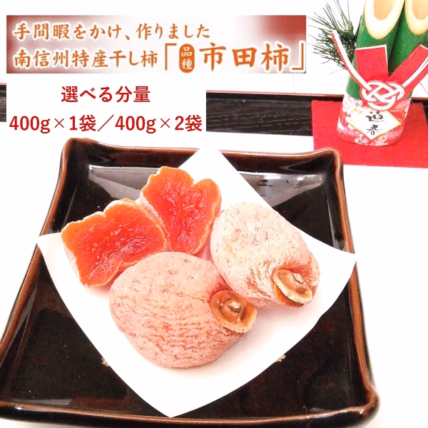 - 干し柿(自然乾燥品) 原材料名:柿(品種:市田柿 南信州松川町産)、酸化防止剤(二酸化硫黄)