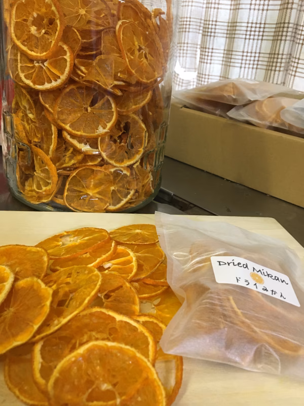 - 名 称 乾燥みかん 原材料名 みかん(高知県香南市産) 内 容 量 30g 賞味期限 2024年 月 日 保存方法 高温多湿を避けて保存 製 造 者 高知県大豊町杉39−2 おおとよ塩かえる農園 塩谷 学