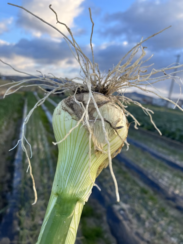 ◎葉玉ねぎは、大きくなっていない玉ねぎをまだ葉が柔らかい状態で収穫します。緑の葉は、酢味噌和えや鍋具材などで召し上がってみてください。白い玉部分は、サラダや炒め物、レンジ加熱ポン酢かけがオススメで、甘くて水分たっぷりです。