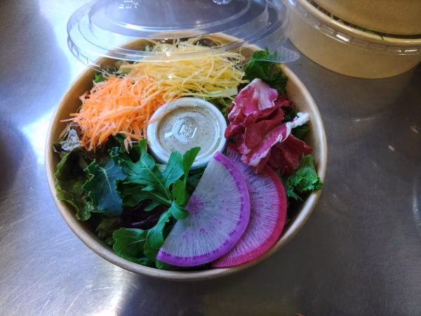 ▼品種・味の特徴 新鮮な有機野菜が7種類ほど入ったサラダ