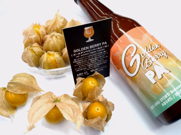 クラフトビールの醸造・販売を行っている岩手県花巻市のBrewBeastさんとのコラボ商品です。1本あたりにゴールデンベリー(食用ほおずき)がピューレとして60g以上含まれています。ゴールデンベリーの果実は、爽やかで程よい酸味と濃厚な甘みがあり、トロピカルでジューシーです。そのゴールデンベリーがたっぷり贅沢に含まれることにより、トロピカルな香りと旨味、そして果肉をも味わえるビールができました。アルコール度数は控えめな4%です。