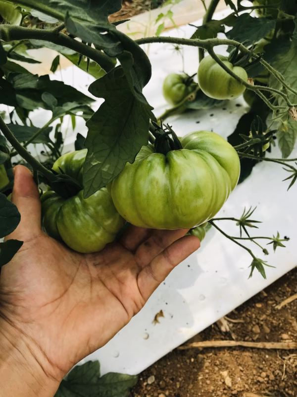 あえて未熟な状態で収穫したグリーントマト1.5キロセットです。1センチ以下にスライスしオリーブオイルソテー、またはフライ!ハワイではそのフライドグリーントマトがとても有名な名物料理!ピクルスや味噌漬けにしても美味!