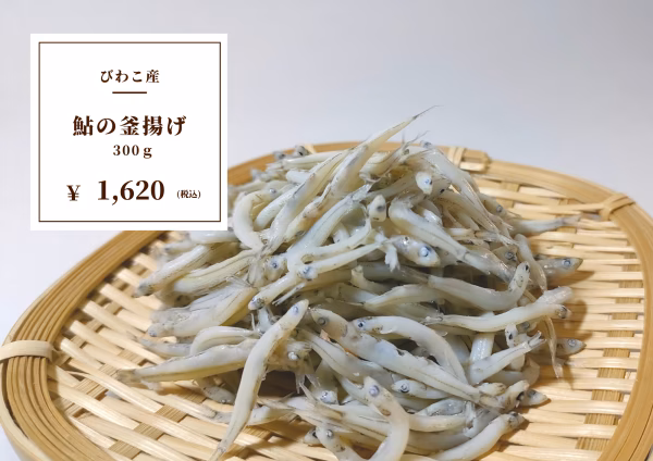 - 原材料 鮎(琵琶湖産)、食塩 本製品で使用している鮎は、エビが混ざる漁法で捕獲しています。