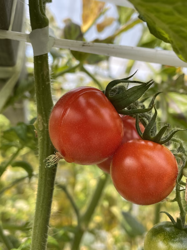 特殊なトマトローゼ水耕栽培システムで栽培しており、特殊な66種類以上の好熱菌微生物を葉面散布、液肥混入することで健全なとまと苗を育てる事で減農薬で安心安全な「とまと」の栽培をしております。