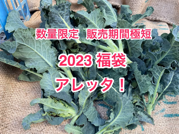 こちらは期間限定、数量限定の2023年の福袋になります。 販売期間はわずか2日間ですすみません! お届けするのはアレッタという野菜。 ケールとブロッコリーから生まれた野菜で、独特の風味と旨みを感じる野菜です。 夕方収穫し、200gごとに新聞紙で包んで発送します。 プラ袋よりも日持ちしませんので、届きましたらなるべくお早めにお召し上がりください。 心ばかりのおまけもお付けします。 2023年がいい年になりますように。