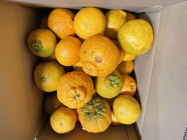 すぐに食べないと腐ってしまう「生キズ果」に「ヤケ果」・みかんの形をしていない(笑)「変形果」・まだまだ緑色が残っている「着色不良果」・触ったらブヨブヨしている「軟果」などの「超訳あり品」をご家族で召し上がる事おススメで販売します。とてもおすそ分け出来るもんじゃありません。