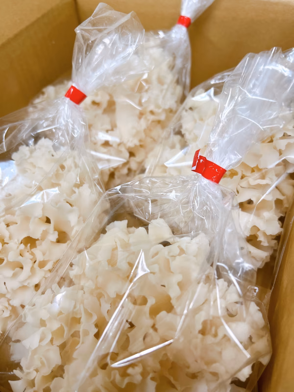 自社開発及び製造の種菌を使用し、 栽培期間中農薬不使用及び管理された室内で安心・安全に生産されたハナビラタケです。
