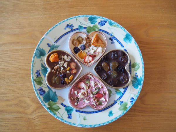 ミルクチョコレートのクランチに、自家製ドライフルーツをふんだんにトッピングしました!