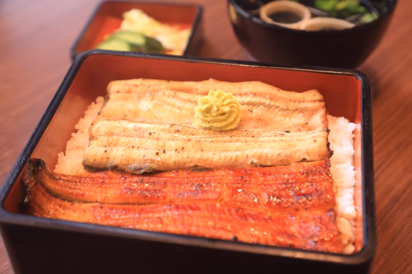 淡水養殖とは違い、天然うなぎに近い海水で養殖しています。海水で育てることで、うなぎ特有の臭みが無く、色見も藍色に近く、天然うなぎに負けない肉厚で上質な脂身と、ふっくらと柔らかな食感がやみつきです。