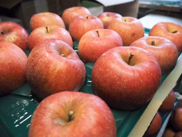 信州の清涼な大気のもとで育ったサンふじは、シャキっとした歯ごたえ、甘酸のバランスも絶妙な自信の一品です。