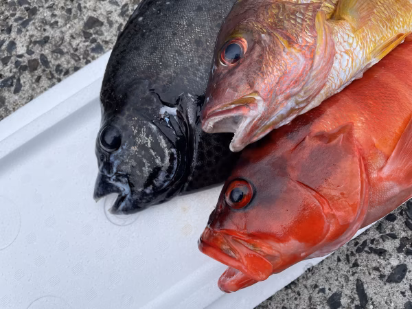 【発送予定日】 発送予定日は12日、14日になります。 アカハタ1.1kg オキフエダイ800g イシガキダイ1.4kg ▼自己紹介 鹿児島県の竹島(離島)で魚突き漁師をしています。 突いてからすぐに〆るので捕獲してから身にストレスをかける事がなくなります。 ▼商品概要 鱗取り、内臓処理をして発送しますので内容量が減ります、予めご了承下さい。 ▼品種・味の特徴・食べ方 鍋や煮付け、刺身や塩焼きなど。 ハタ系はアラから出る出汁が非常に美味しいので鍋をおすすめしております。 竹島でも個人的にもサクの状態でバーナーで炙り、切り身し、生姜ポン酢などで食べる事が好まれています。 ▼栽培/生産方法、こだわり 素潜りでの魚突きで捕獲しています。常に頭、エラ付近を狙うように意識していますが、体に撃つ事もあります。 その場合割引し販売します。 ▼注文に際しての注意点(配送方法や納期指定など) 小さい離島という事もありフェリーの便数も少なくお日にちのご指定が難しくなっております。 ご注文から発送まで2〜4日以内の発送をこころがけておりますが天候不良が続く場合、キャンセルさせていただく場合がありますのでご理解ください。