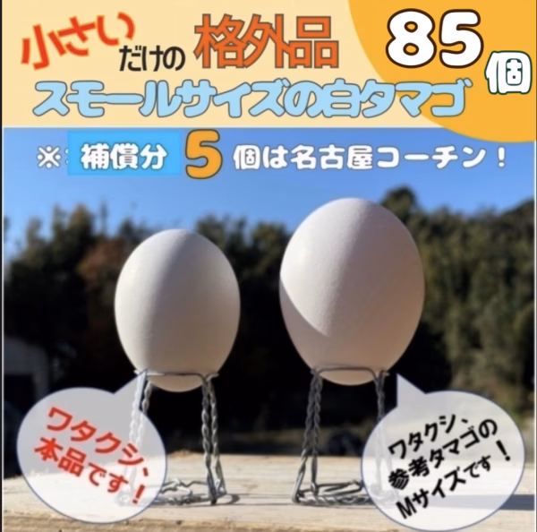 発送商品は画像1枚目の左側の卵です!(右側は参考までに、Mサイズです)