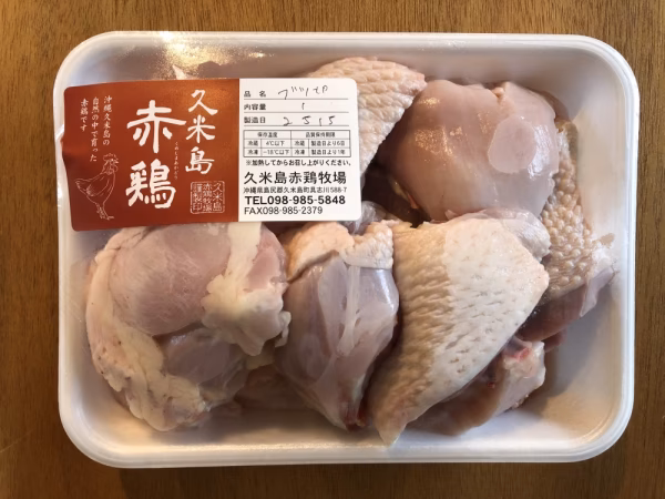 「久米島の久米仙」の泡盛の酒粕を発酵させたものをエサに混ぜて与えています。それにより、飼育日数が長くても肉が硬くならず、プリッとジューシーな肉質に仕上がります。