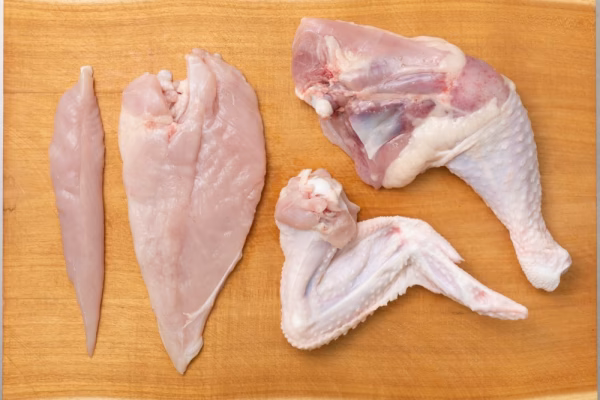 ムネ肉:チキンカツ、鶏ハムなどに。細切りにして炒め物にも。