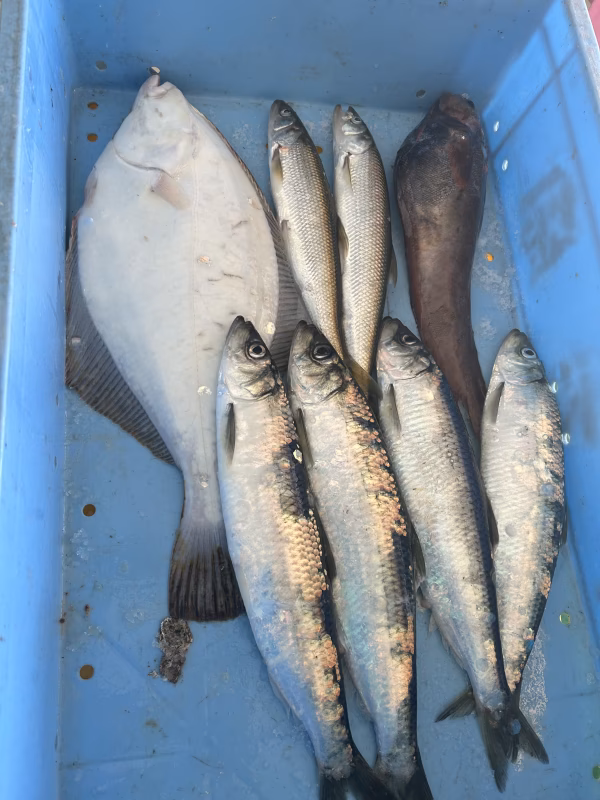 何が入っているかは、漁に行ってからのお楽しみ♡ 網からあげたその瞬間‼️ 船上神経〆、血ぬき、冷やし込み‼️ 海とお魚に感謝の気持ちを込めて、丁寧に行います。 皆さんの食卓へ感動と美味しさをお届けします❗ 消費者の方から 魚は切り身しか買ったことがない… お魚の腹を裂くのには抵抗がある… 内臓を取り出すとまな板が血だらけ… 魚って生臭い…臭い全然とれない…え…無理… でも新鮮なお魚を食べたい‼️と思っている方! ぜひ、イチマンのピカピカの魚食べてください‼️ こちらで下処理して発送いたします🐟 尚、自分で下処理したい場合はご連絡くださいネ。 私もポケマルに出品しようと考えるまでは、包丁も握ったことのない漁師でしたが、魚屋さんに一から教わり今ではお客様に褒められるまでの腕前になりました✨ 一人でも多くの方に魚に触れて、食べていただきたいです。 >* ))))><〜〜 ドンコ ドンコ汁 肝付き キュウリウオ フライ  野菜のキュウリの匂いがします! 石カレイ 刺身、煮付け ニシン4尾 オス 甘露煮、煮付け、丸干し  2.4k サイズにより異なる場合がございます。