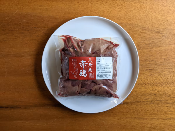 「久米島の久米仙」の泡盛の酒粕を発酵させたものをエサに混ぜて与えています。それにより、飼育日数が長くても肉が硬くならず、プリッとジューシーな肉質に仕上がります。