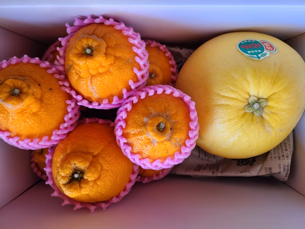 ▼柑橘の王様といわれるほどの大きさ、味も上品で甘さと酸味が程よく香りも良い柑橘です。