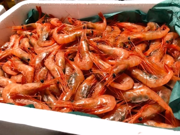 人気の1キロ入り、秋田沖のとれたての「ほっこく赤えび」(甘エビ)です!