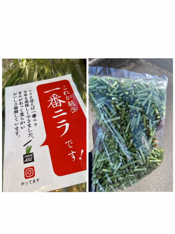 マイナス気温になる寒い地域でしか出来ない、越冬1番ニラと、隠れた人気の茎ニラセットです。