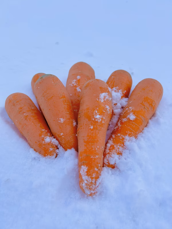 雪が1メートル以上も積もった中からの収穫作業はとても大変ですが、その厳しい環境で育ったニンジンは、とても甘味があり、ジューシーです。