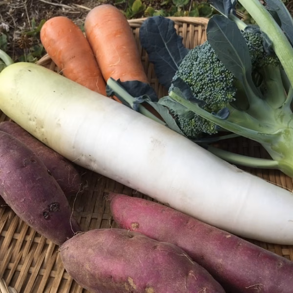 11月、12月のおすすめは大根、人参、ブロッコリー、サツマイモ(紅はるか・鳴門金時の2種類)。冬本番前のこの時期は野菜たちが植物として元気で鮮度感あふれています。