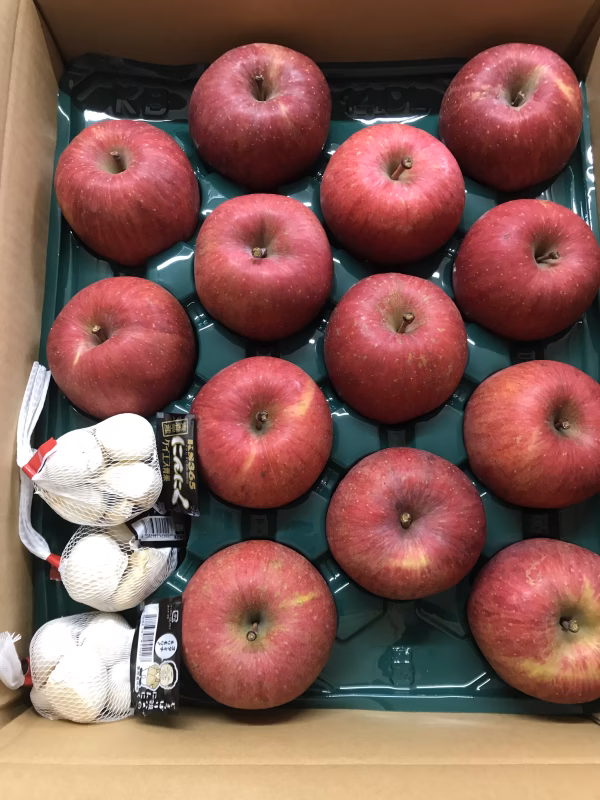 玉サイズ13玉の場合、サンふじ12個入+70g×3ネット