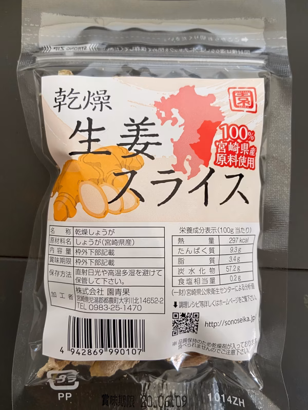 ▼商品概要:手間ひまかけて作った「農家手作りの乾燥生姜スライス」。100%宮崎県産生姜を使用しております。添加物、保存料は一切使用しておりません。そのまま調理に使用できます。お好みでパラパラと砕いて使用する事も出来ます。お料理にあわせて、お好みでご使用ください。 ▼栽培/生産方法、こだわり:100%無添加・保存料一切使用していません。 ▼品種・味の特徴:原料はオオショウガを使用しています。 ▼分量の目安:1パック 10g ※少量でも十分濃く味わえます。