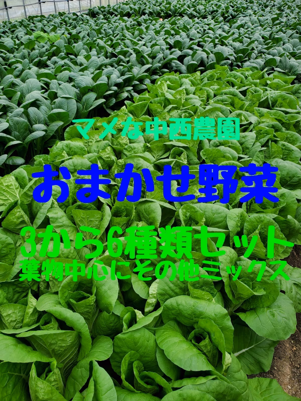 小松菜、千宝菜、わさび菜、ミニ白菜、春菊、カリーノケール、ほうれん草、万願寺とうがらし【夏限定】、きゅうり【夏限定】の中から3種類から6種類をチョイスして発送いたします。