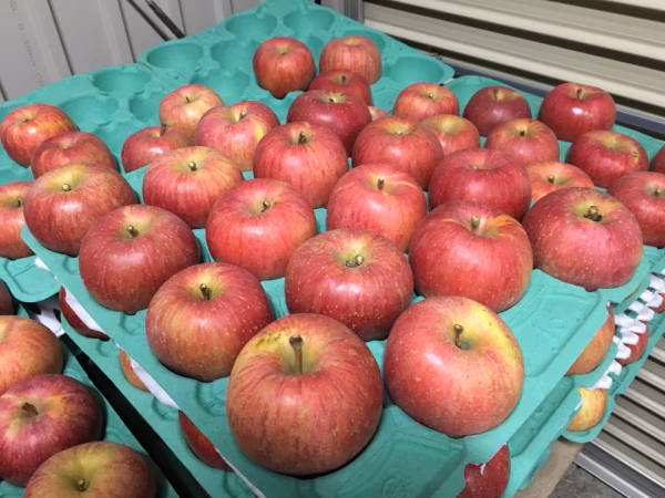 昼夜の寒暖差や日照時間が長い、北信州で栽培されたサンふじりんごです