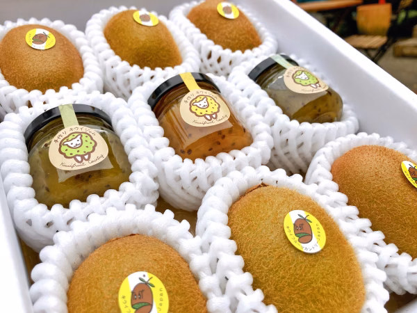 1箱キウイ6個、ジャムは3瓶(1瓶で50g)入り。