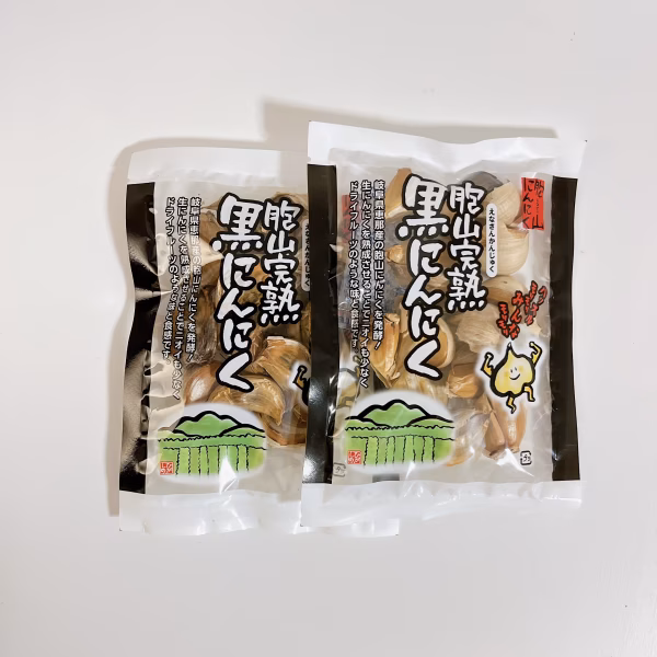 ご覧いただきありがとうございます! 内容量:胞山完熟黒にんにく バラ20粒×2袋  賞味期限:出荷日から1年 岐阜県恵那市で土づくりから加工まで こだわり抜いた安心安全な完熟黒にんにくを産地直送で 皆さまにお届けします♪ 黒にんにくとは、高温多湿の環境で、 1ヶ月間熟成させ黒くなった ニンニクのことを黒にんにくといいます。 胞山完熟黒にんにくは第1熟成45日間。 第2熟成45日間。合わせて3ヶ月の間熟成しています。 その為、にんにくは柔らかく、ドライフルーツのような味で とても食べやすくなっています^ ^★ ぜひお試しください(^-^)/* ーーー*ーーー*ーーー*ーーー*ーーー*ーーー*ーーー ●中には潰れてしまった物もございます。  →完璧を求める方は購入を   お控え頂きますようお願い致します。 ●黒にんにくの取り扱いについて  →やわらかめに仕上げておりますので、   購入後は、袋から出していただき、風通しの良い場所   もしくは、冷凍庫に保存して、   お好みの硬さでお召し上がりください。 ●ご購入いただいてから4日〜7日で発送いたします  →商品が準備でき次第発送となりますので   多少日にちが前後する場合もございます ●梱包は丁寧に心がけています ●お値引き・返品・交換は受け付けておりません。  ご了承ください ●即購入OK #黒にんにく #黒ニンニク #国産 #胞山完熟黒にんにく #ニンニク #にんにく  #アイチエンジング #お試し用  #岐阜県産