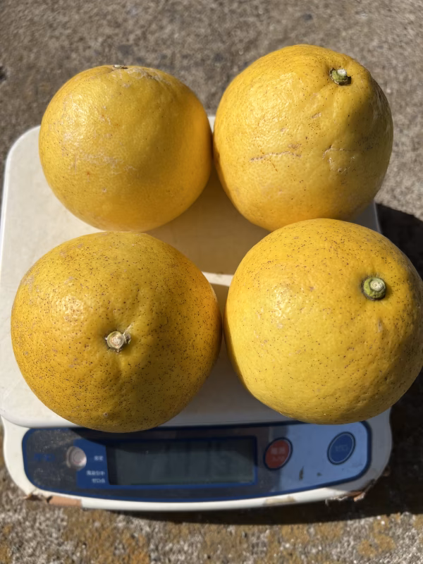農薬不使用で栽培した文旦です。農薬使用すると皮がきれいに比較的育てやすいですが、農薬不使用だと皮にシミなどを出しやすくて、栽培が難しい品種です。