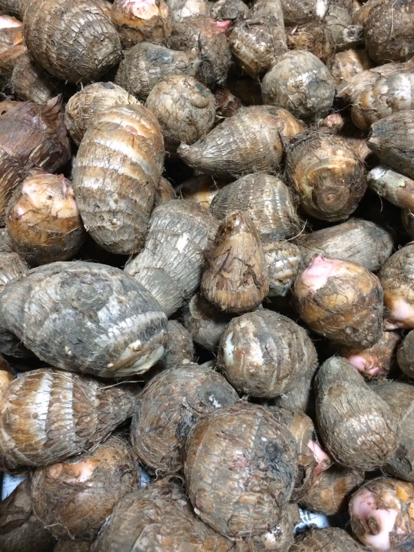 無肥料無農薬栽培で栽培された里芋(赤目芋)