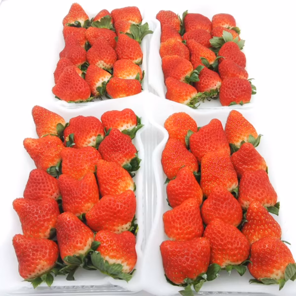 静岡限定生産のイチゴ新品種「きらぴ香」の大粒で形いろいろなものが入っておりますが、今回は上位規格の三角形も入っている特別セットになります。収穫量が少ない現在は1日1箱しかご用意出来ませんが、是非皆様にこの美味しさで幸せなひと時をお過ごし頂けたらと思います。