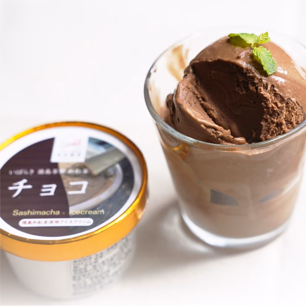 濃厚なチョコレートアイスに高級猿島和紅茶をチョコっと入れて作りました。しっかりとしたチョコの味に和紅茶の後味がアクセント