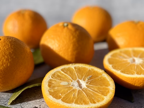 甘夏は、歯ごたえのあるみずみずしい果肉が特徴で、 ほのかな苦味とスッキリした甘み、酸味のある昔ながらの味わいをお楽しみいただけます。恵まれた条件で育った、ひと味違う甘夏を是非一度ご体験頂ければ幸いでございます。