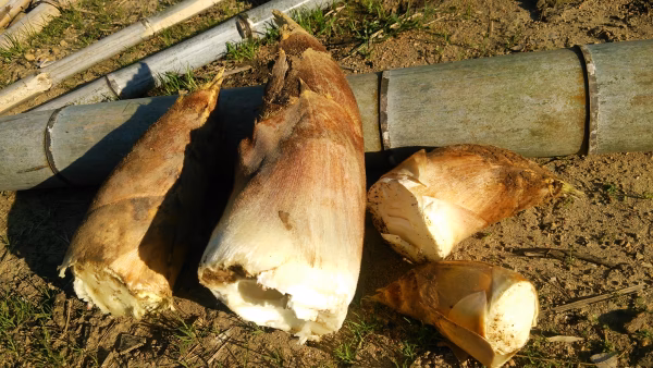 遠州地方浜松のキメ細かな赤土で育った孟宗竹の掘りたてタケノコを皮つきでお届けします。肥料や農薬はもちろん竹林管理に除草剤も使用していません。