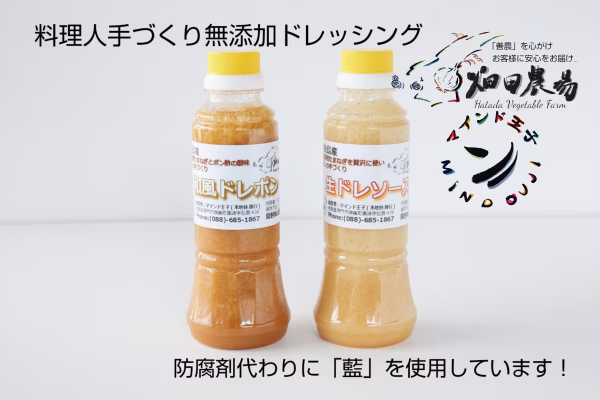 日頃から人の健康を第一に考えられて、丹精込めて手づくりの「生ドレソース」「和風ドレポン」は、万能ソースと言われるほど、徳島県鳴門では有名なドレッシングです。