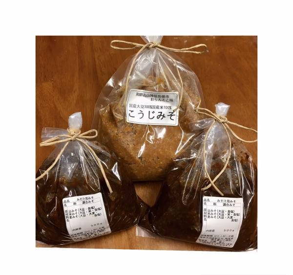 たけ様専用です! 少しづつ販売開始させていただきます😊✨ ▼商品概要 3年熟成させた味噌が新登場です!! 濃厚な味噌は味噌汁用でお使いください♡ スーパーなどでは買えない味の味噌だと思います! 3年味噌は、こうじみそと製造方法が全く違い、米、豆、麦で作る味噌です 米・豆・麦全てに麹を付けて、1年目の夏場は毎日混ぜて作ります! その後2年寝かせて商品に出せる味噌になります!手間をかけています!! こうじみそより濃厚な味噌になります! こうじみそは米麹と大豆で作ります 米麹たっぷりと使うので甘みのある味噌です 味噌汁以外にも、焼き味噌にしたり、色々な料理に使えるお味噌です! ブレンドする方も多く、朝市でもセットで買われるお客様も多いです! 単品でもブレンドでも3パターン楽しめるセットです 是非お試しください✨ ▼数量、分量の目安 味噌汁用みそ 500g×2袋 こうじみそ  1kg ▼栽培/生産方法、こだわり 薪で火を焚き時間をかけて作る自家製味噌です!