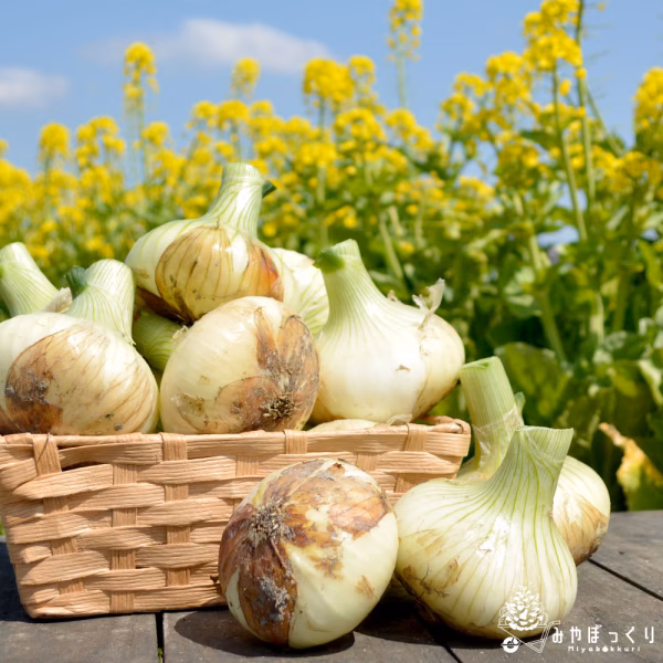 ご覧いただきありがとうございます。 3月も半ばを過ぎすっかり春らしい陽気になってきましたね🌸 淡路島から春かぜと共に極早生新たまねぎのご紹介!! ◇淡路島の極早生新たまねぎってなに??◇ 3月頃から収穫でき、従来の新たまねぎより水分量が多く辛みが少ないのが特徴で、4月末から収穫予定の新たまねぎより少し平べったいフォルム 新玉ねぎは白っぽく薄い皮で全体的に柔らかいのが特徴です!! また味は、甘くてみずみずしいので薄くスライスして生でサラダとしてもおいしいですよ(o^-^o) ※ちなみに私達地域(南あわじ市)で古くから栽培されている玉ねぎの時期は4月末~5月頃に収穫が始まります。  出品の際はよろしくお願いしますm(_ _"m) ◇新玉エピソード🧅◇ 大阪に住んでいた時に主人の実家から玉ねぎをいただいていて淡路の新玉ねぎがある時はサラダにしてよく食べていました(о´∀`о) とても甘いのでわたしはドレッシングなしでそのまま♪ ビックリしたのが淡路島に嫁いでから友人にプレゼントすると玉ねぎ嫌いだった友人が食べれるようになりおいしい!おいしい!と笑顔に☆ 嫌いから好きになれる!甘くておいしい新玉ねぎです!! ぜひご賞味下さい(o^-^o) ◇甘味が爆発する方法◇ 今までわたしは、淡路の玉ねぎを甘いとは思ってましたが採れたての玉ねぎをベタに丸々レンジで加熱して、かつお節とポン酢をかけて食べてみると あれ?こんなにおいしかったっけ?っとびっくりしましたΣ(゜Д゜) この驚きをみなさまにも味わって頂きたいです!!絶対驚きますよ!!! ぜひお試し下さい(σ≧▽≦)σ ※お届けの日にち・時間を指定する方はご注文前にご連絡お願いします。
