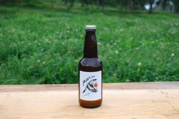 このサイダーのネーミングはMOZU。 冬鳥・旅鳥として渡来するオオカラモズです。 はじめての醸造。その最初の一歩に「堅実」の言葉をもつ鳥。 そしてりんごを抱え羽ばたくイラストに今後の活動が飛躍するという願掛けの意味も込めています。 (ラベルデザイン/北畠キヨ)