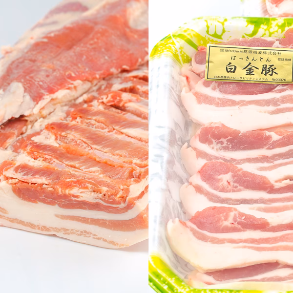 高級飲食店でも使用されている白金豚のバラ塊肉と、バラ焼肉用がご家庭でお楽しみいただけます。