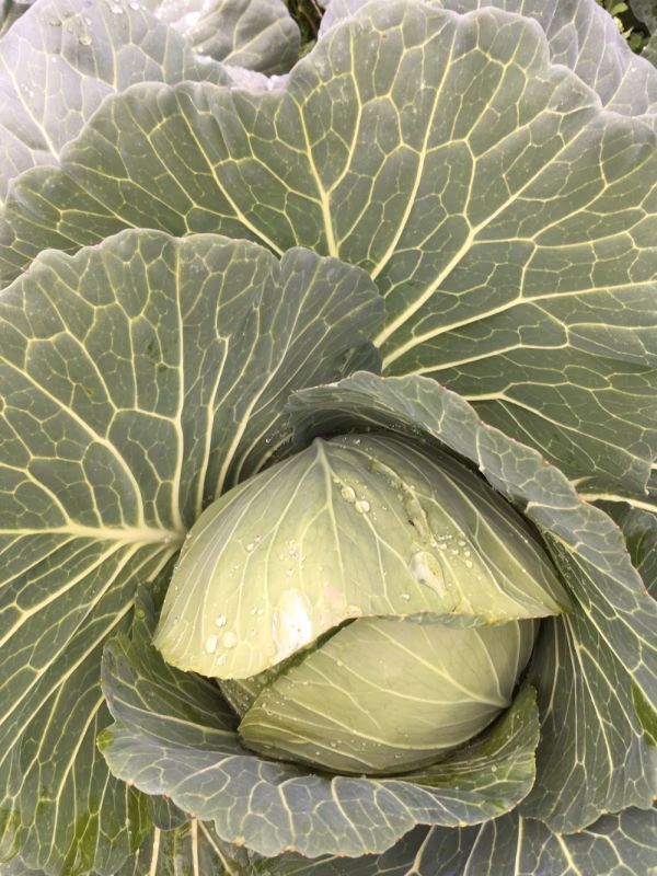 本来は10月に収穫すべき品種なんですが、ほぼ肥料も撒かず、畑の土のチカラとキャベツ自身のチカラでのんびり育ちました。
