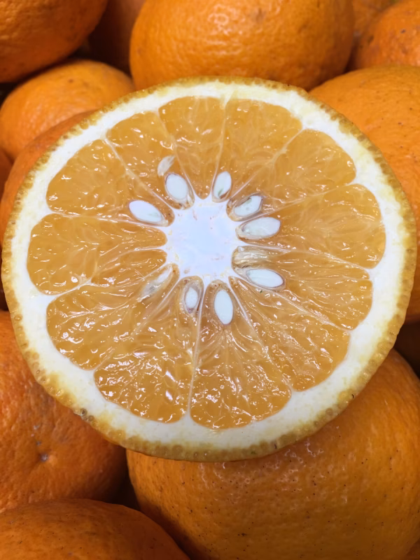 この甘夏は、スルガ甘夏と言って、甘夏(川野夏ダイダイ)と文旦を交配させて作られたものです。静岡市産はスルガエレガントの商標で呼ばれています。甘夏より芳香に優れ、糖度が高く味も濃厚と言われています。
