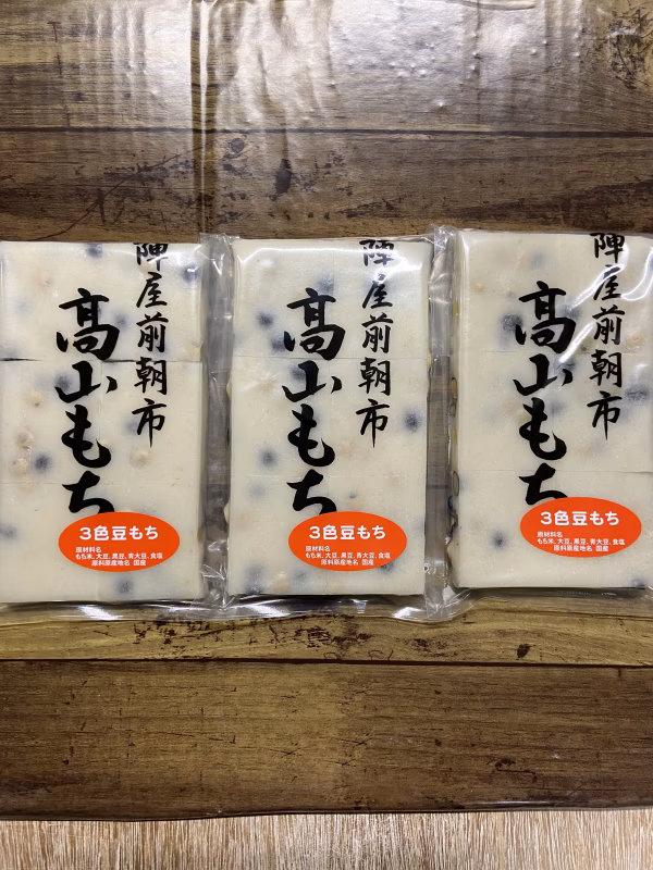 高山市産の大豆・青大豆・黒豆の三色の豆を蒸して、お餅に加えました。