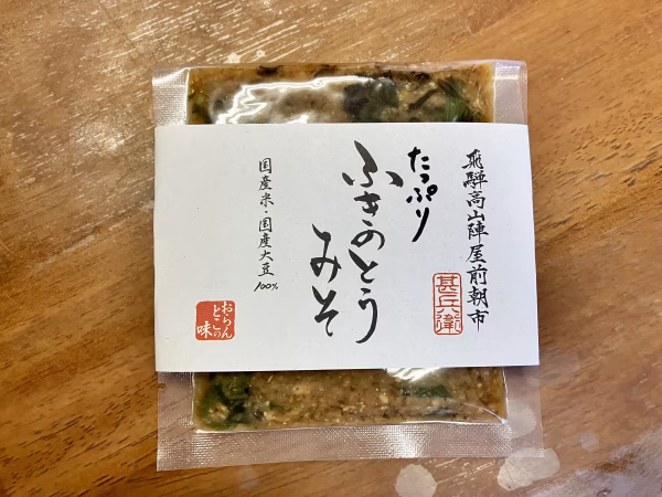 ペイスト状にしたふきのとうと刻んだふきのとうを入れた新商品です