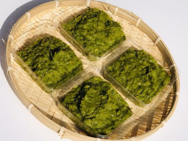 北三陸たのはた産100%の原料で製造しためかぶを湯通し(釜ゆで)した後に、食感も楽しめるよう粗目のタタキにしました。めかぶ本来の味、食感、磯の香りが楽しめる一品です。たのはたで育った肉厚のめかぶは粘りも食感も抜群。海藻本来の風味も芳醇です。