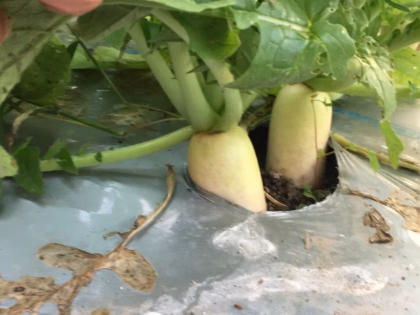 沢庵漬け用葉付きだいこん6本 農薬、化学肥料を使わず作りました。 多少の虫喰いは有るかもしれません。